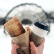 Капуччино и свежеиспеченный трдельник - головокружительное сочетание, которое можно найти в парке «Дубки» на центральной площади, рядом с детской площадкой.