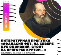 Литературная прогулка «Афанасий Фет. На севере дуб одинокий, стоит на пригорке крутом…»