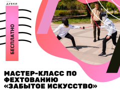 12 августа в 12:00 в парке "Дубки" пройдет мастер-класс по фехтованию, посвященный Дню физкультурника.
